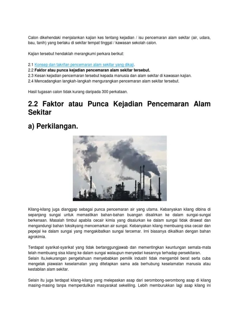 Punca pencemaran, kesan serta cara dan langkah mengatasi pencemaran sungai di malaysia? Contoh karangan pencemaran sungai pt3 terbaik. Contoh karangan bahan rangsangan antara punca berlakunya pencemaran air akibat pembuangan sampah sarap.